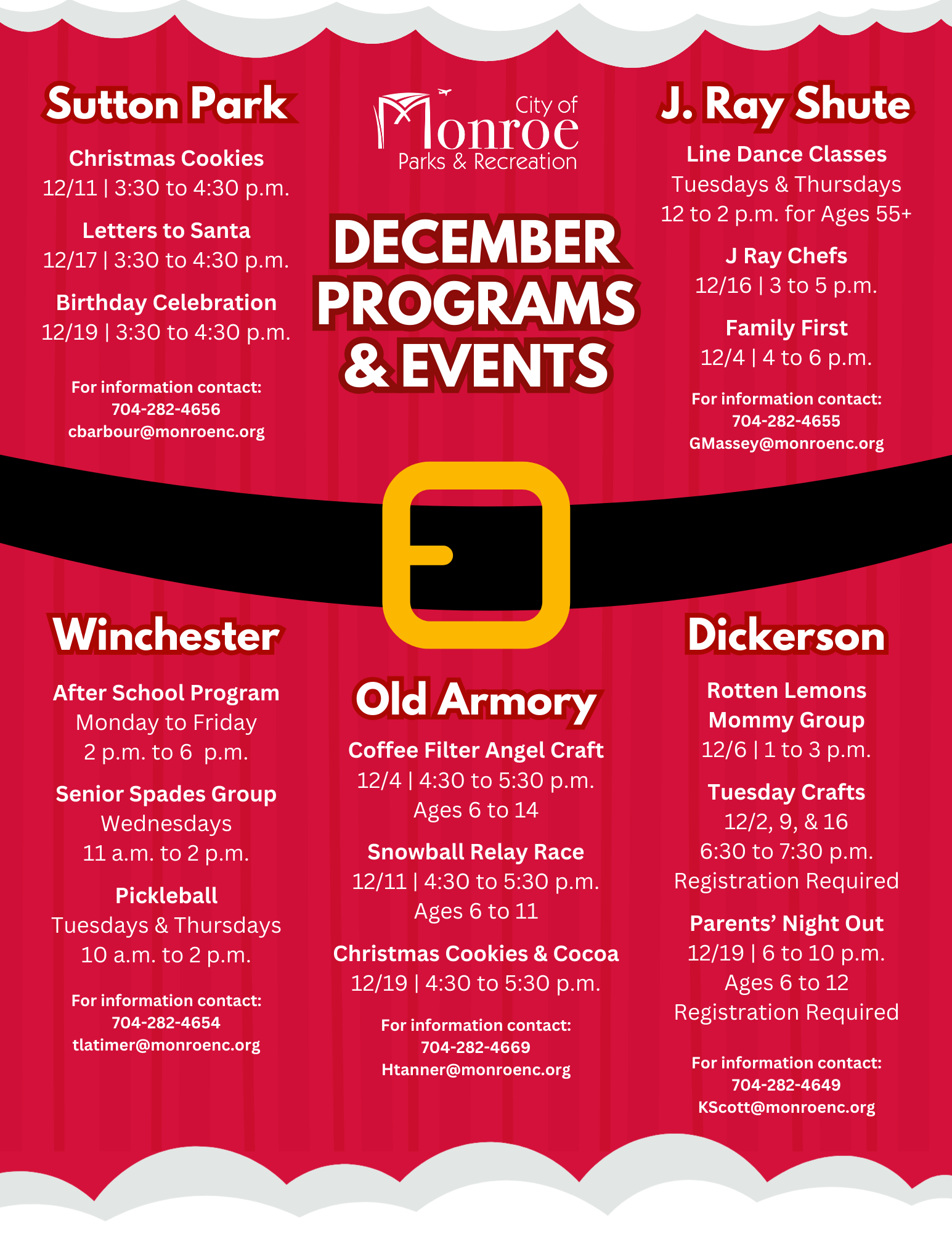 The City of Monroe is excited to announce the following events at our community centers in December!